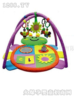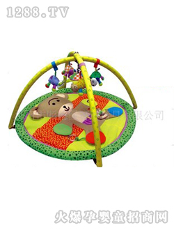 2、架子上有4個(gè)內(nèi)置搖鈴、BB器的顏色鮮艷、造型可愛的布玩,既可以懸掛在上面吸引bao--bao的眼球,又可以取下給bao--bao拿在手上玩。