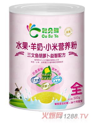 聰貝雅水果羊奶小米營養(yǎng)米粉,升級營養(yǎng),好消化,易吸收,奶香果味寶寶更喜歡。更多詳細(xì)信息請咨詢火爆孕嬰童招商網(wǎng)相關(guān)專題……
