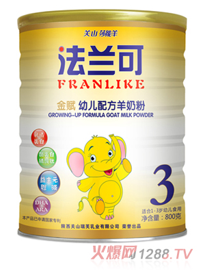 法蘭可是陜西關(guān)山乳業(yè)有限責(zé)任公司最近新推出的一系列嬰童健康羊奶粉,該系列產(chǎn)品優(yōu)選天然原料,經(jīng)多位營(yíng)養(yǎng)專家潛心研究而成,升級(jí)配方,營(yíng)養(yǎng)更均衡更全面,給成長(zhǎng)中的下一代更多高品質(zhì)呵護(hù)。