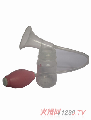 4.將吸奶罩罩于乳房上并稍向下傾斜,貼緊。一手握住奶瓶,一手擠壓橡膠球,即可吸出乳汁。使用過程中可根據(jù)需要通過擠壓吸球的次數(shù)來調(diào)整負壓。